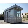Описание: Киоск-павильон представляет собой компактный мобильный модульный блок на сварном рамном каркасе с ограждающими конструкциями стен из сборных сэндвич-панелей, с облицовкой стен снаружи фасадными металлокассетами, с большими окнами на три стороны, с помещением для санузла. Кровля из профнастила высокой прочности с малым скатом. В системе рамной конструкции на основе стальных профильных труб несущего каркаса создан утеплённый корпус с с облицовкой стен и потолка внутри помещения декоративными панелями ПВХ (ЛДСП на выбор). Внутренняя отделка помещений в совокупности с большими окнами на три стороны придаёт особый комфорт и уют. Назначение такого киоска- павильона универсальное, как в качестве киоска для торговли, поста охраны, небольшого кафе. Бытовое помещение павильона рассчитано на круглогодичную эксплуатацию при наружной температуре окружающей среды от +350 С до -350 С с использованием отопительных приборов.