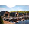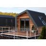 Описание: Компактный, стильный жилой модуль для глэмпинга «DW FX248-7.2.А». Модуль изготавливается на основе каркасной комбинированной несущей системы из стальных профилей и подготовленных профилей из хвойных пород дерева со специальной обработкой и покрытием при эксплуатации с повышенной влажностью. Светопрозрачные конструкции ПВХ/Стекло окон классической формы, окон мансардного типа и дверей прекрасно вписываются в разносторонний геометрический архитектурный образ модуля, придавая изделию особую привлекательность. Утеплённый корпус всего модуля делает его комфортным для круглогодичной эксплуатации при температуре окружающей среды от +35 до -35 0 С с применением нагревательных приборов в холодное время и сплит-системы в жару. Изготавливается в нескольких комплектациях при эксплуатации на понтонных системах. Предлагается без понтонных модулей, которые предлагаются дополнительно по согласованию с заказчиком.
