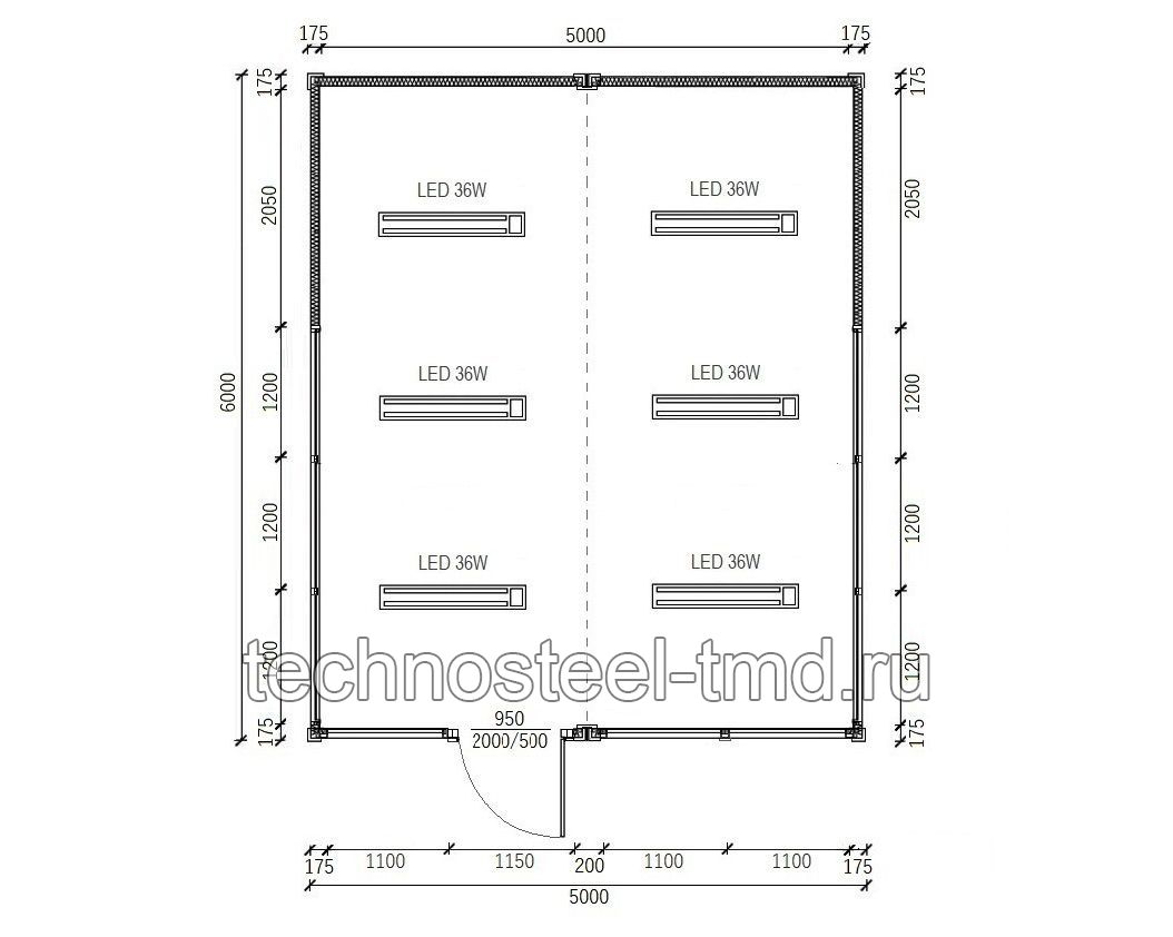 Параметры. Длина корпуса павильона, (мм): 6000. Ширина корпуса павильона, (мм): 5000. Высота корпуса павильона, (мм): 3150. Длина помещения, (мм): 5700. Ширина помещения, (мм): 4700. Высота потолка помещения, (мм): 2650. Площадь изделия, (м2): 30,. Площадь помещения, (м2): 26,79. Количество помещений, (шт.): 1.